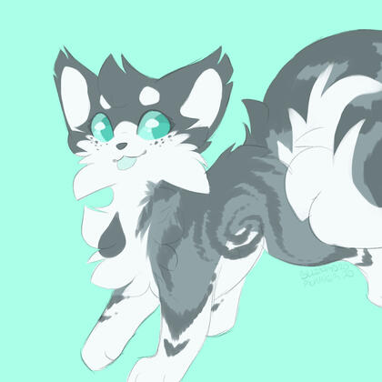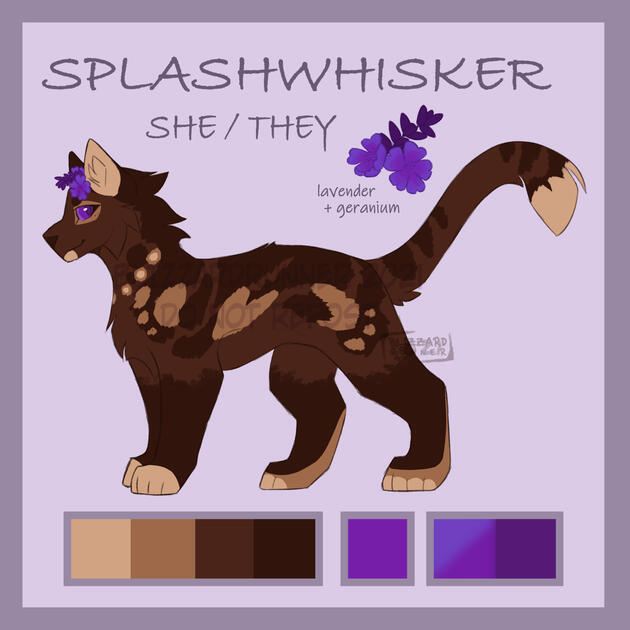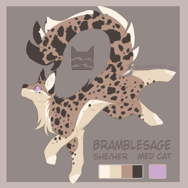 Customs are a sketched side view of a character made to your specifications. Name, pronouns, species, and a color palette are included.